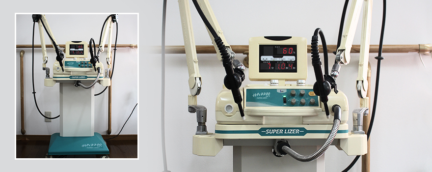 赤外線をスポット状に照射する光線治療器です。 体の奥の方まで届くことで知られている「近赤外線」の中でも、特に生体深達度の高い波長帯を取り出し、レーザーに似た特性を持たせてありますので、効率よく照射部の血行をよくできます。また、体の奥まで散らずに届くことから、自律神経を整える星状神経節照射療法が可能です。
